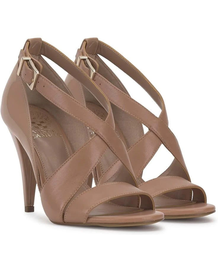 - Experience top-notch solace and look classy wearing Vince Camuto® Aleanna heels. It is designed with crossover vamp straps, stiletto heels, and an open round toe design. The adjustable ankle strap buckle offers you a custom fit.
