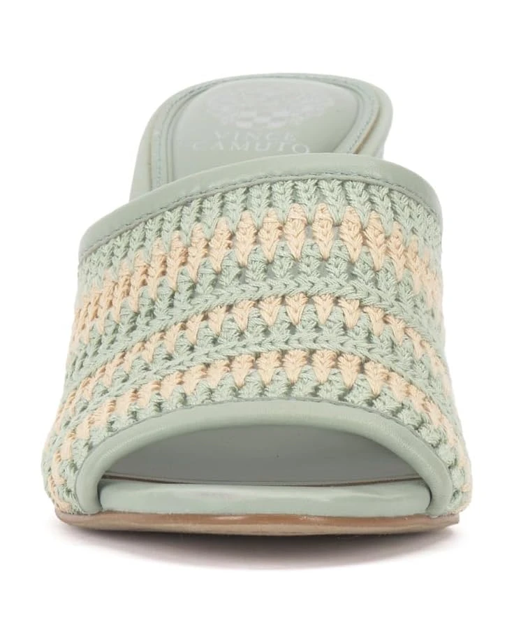 - Give an instant lift to your warm weather style by pairing with the minimal but elegant Vince Camuto® Alyysaa Sandals. Designed with a single textile-crocheted band on the upper and leather piping across the mid foot, the shoes come in a slip-on style with elasticized goring inside for a flexible fit. The style of the sandals is elevated by the covered, blade block heel while their comfort level is enhanced by the padded leather footbed.