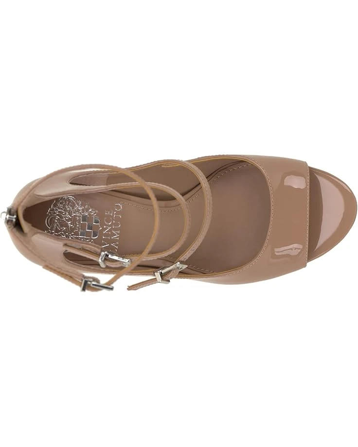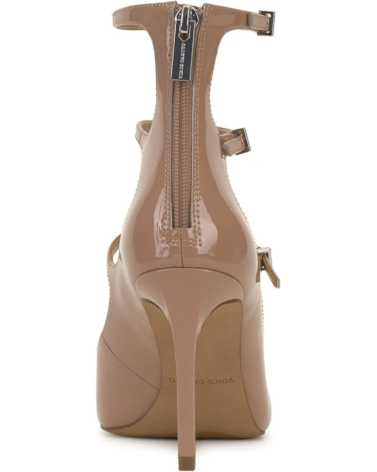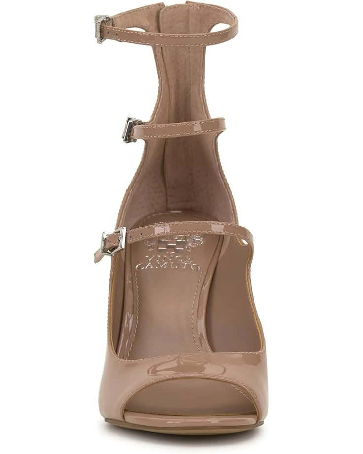 - Step up in style by wearing the Vince Camuto® Anikah heels. The statement heels have a back zipper closure, open round toe, and an intricate three-strap design with buckle detailing for an effortless look. The stiletto heel sandals have patent leather upper with synthetic lining and footbed that makes them comfortable to wear.