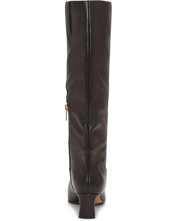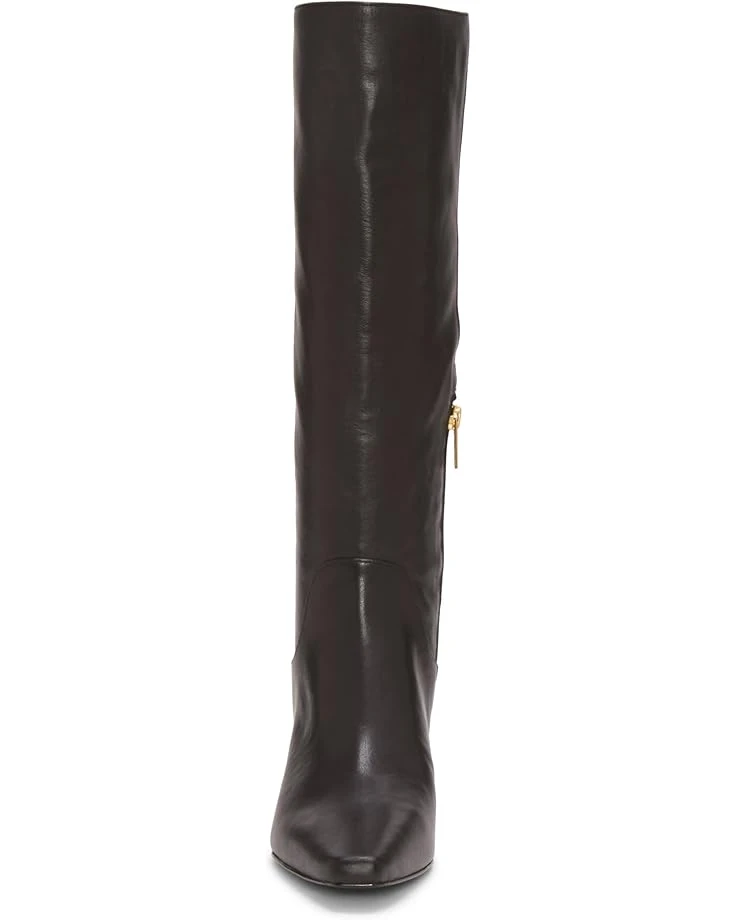 - Boot up your style wearing the Vince Camuto® Avriah – Wide Calf. Crafted from leather upper, polyester lining, and insole, this Sleek, tall shaft dress boot with snip toe is in contention for your new boot of the season. This boot boasts a walkable, 2in covered kitten heel with comfort padded sock, zippered inside, almond toe, and knee-high silhouette. It has an inside elastic gore for improved fit and comfort.
