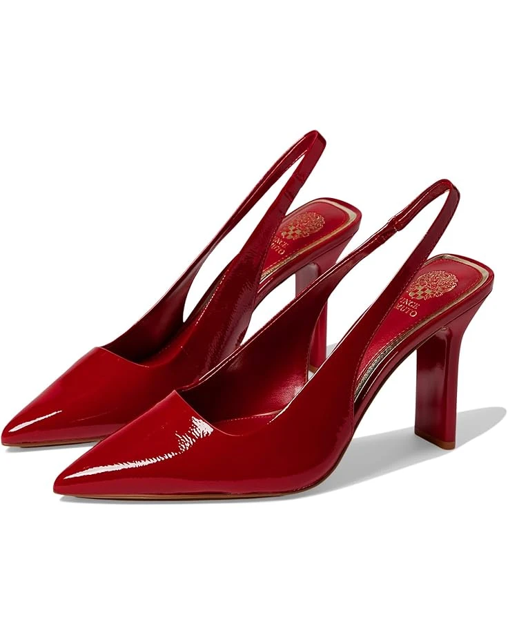 - Step into a world where style dances gracefully with comfort with the Vince Camuto® Bantie pumps. These aren’t just any pumps; they’re a statement of elegance with their sleek pointed toe and a unique squared-off stiletto heel that sets them apart. Choose between a glossy soft patent or a shimmering crinkle metallic leather upper to best suit your style. The shoes are thoughtfully designed with an elastic gored strap for that perfect, secure fit and a rubber padded forepart on the outsole for enduring comfort. T