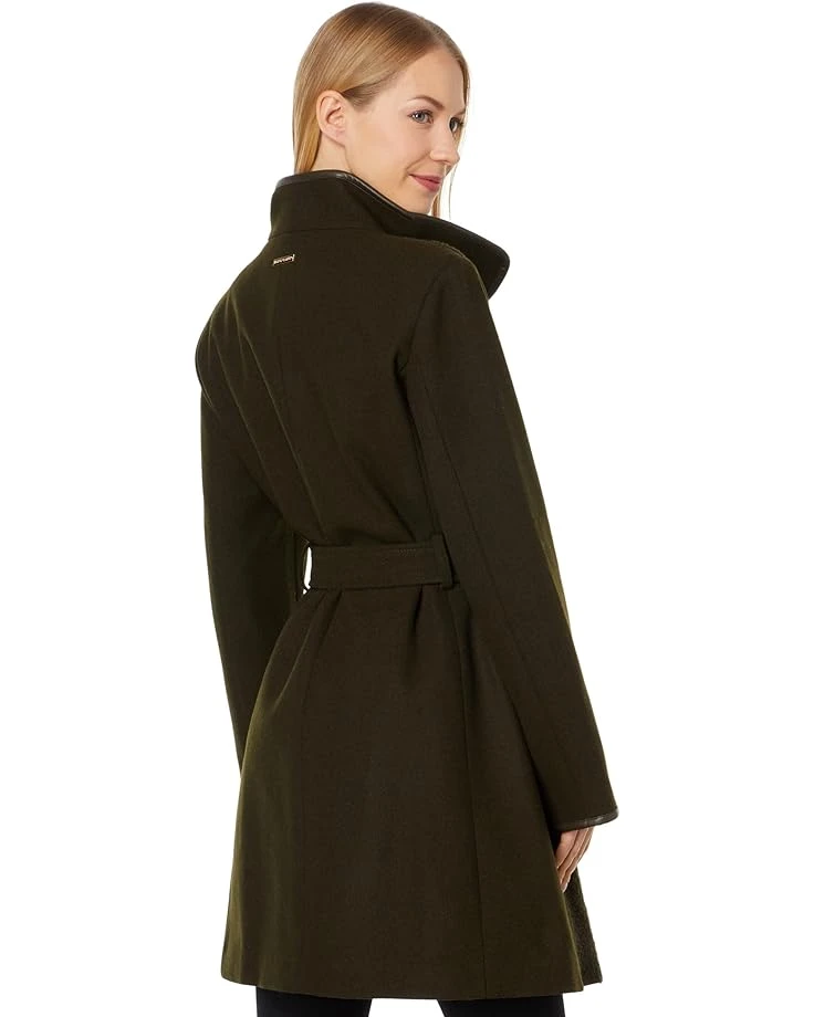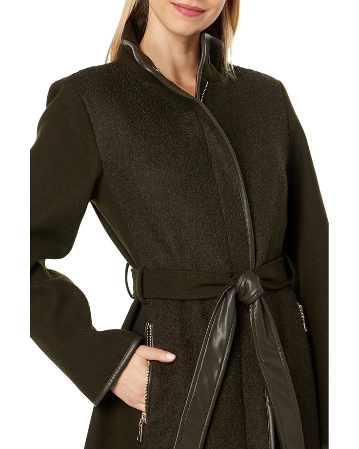 Vince Camuto Belted Wool Coat with High Neck and PU Trim V29777A-ME | Coats & Outerwear