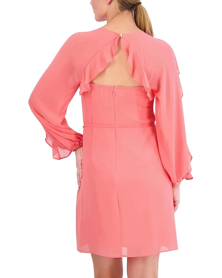 - Designed to match your everyday comfort and style, the Vince Camuto® Chiffon Float Dress offers superior comfort and a fashionable look. The long ruffle sleeves and boat neckline add to its style. This casual dress is styled with ruffle detailing on the sleeves and back. The zippered back closure offers easy wear. A great addition to your wardrobe, this short dress works for different occasions.