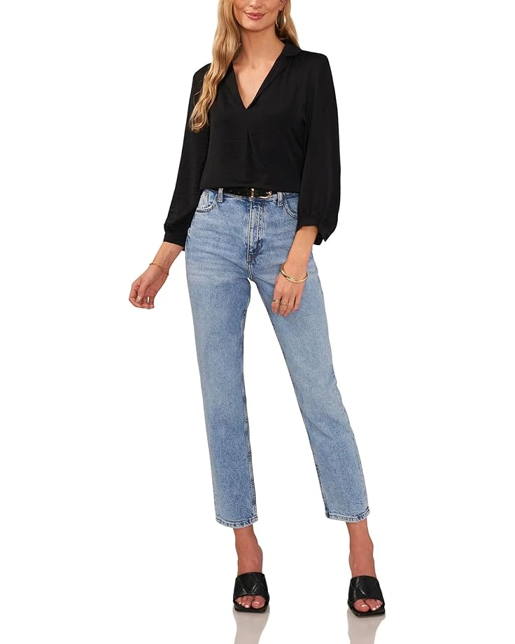 - Step out in chic style in the Vince Camuto® Collared Long Sleeve Blouse With Shirtale. Featuring a v-neckline, three-quarter sleeves and a shirttail hemline.