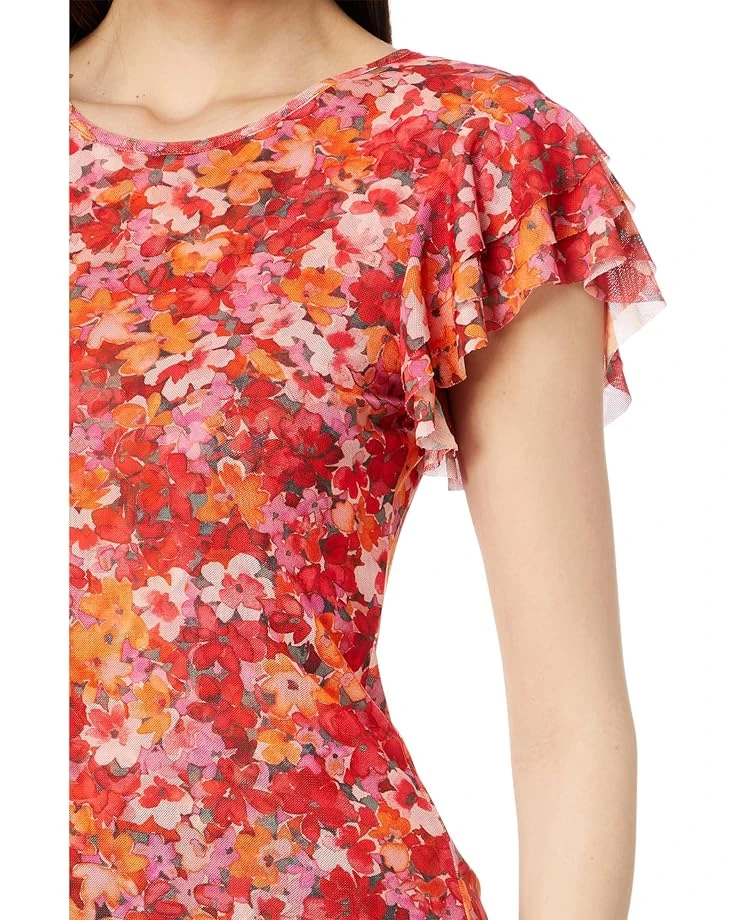 This such a beautiful top. Vibrant colors. I got the Lg and it falls nicely, no clinging.