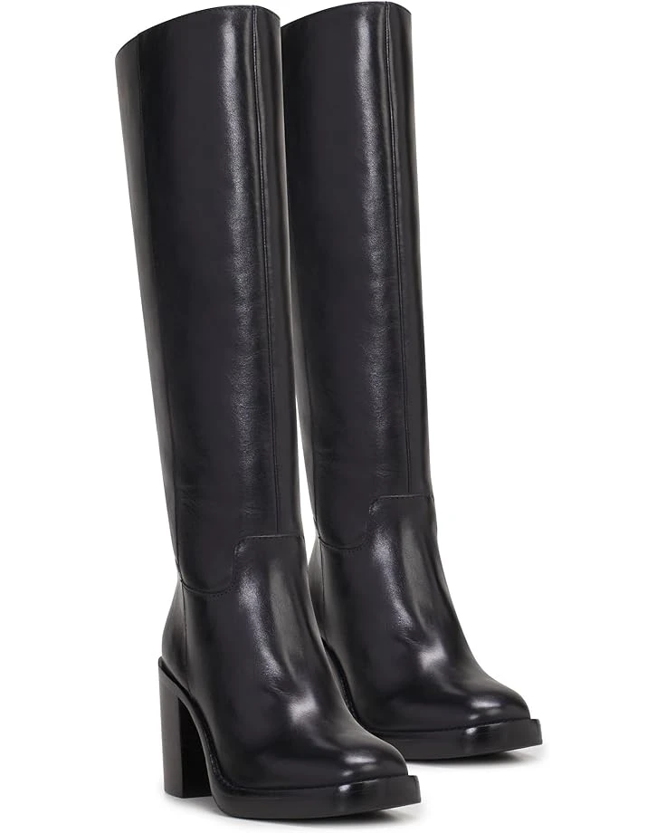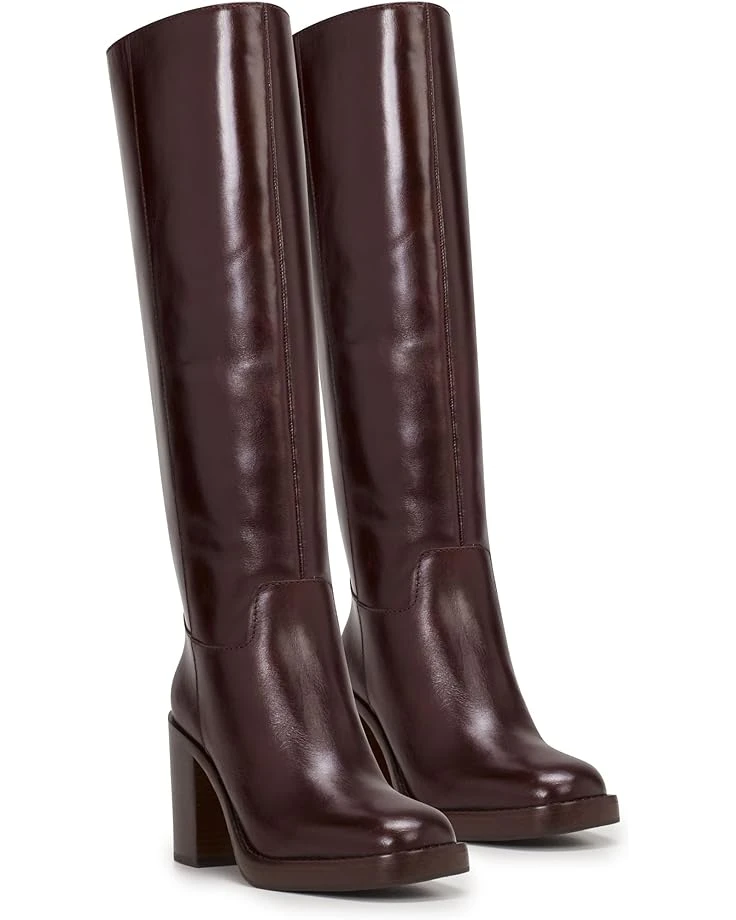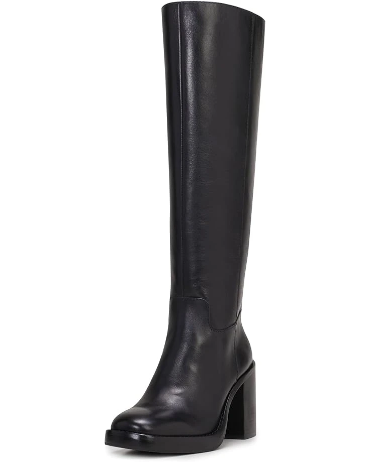 - Swing to utmost comfort and luxe style wearing the knee-high Vince Camuto® Gibi Boots. The square toe footwear features an extra wide calf width with a high-block heel and zippered side closure.