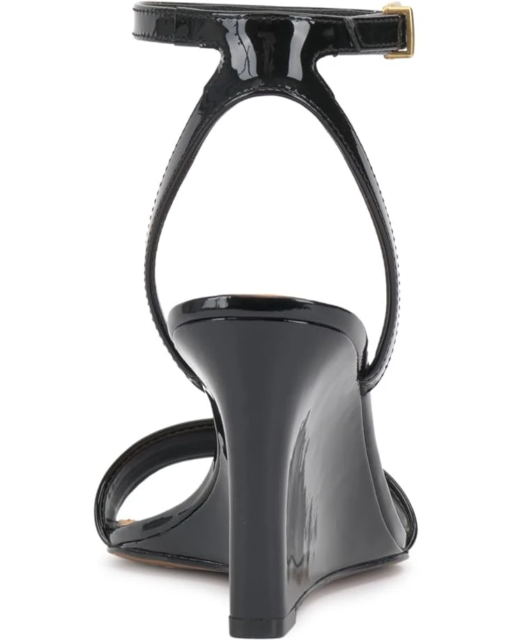 - Redefine elegance with every step by wearing the Vince Camuto® Jefany, where minimalism meets sophistication. This dress wedge boasts a sculpted silhouette, creating the illusion of a sleek stiletto from behind. Its single band toe strap and almond-shaped open toe add chic simplicity, while the angled sling and bracelet straps with adjustable buckle ensure a secure fit.