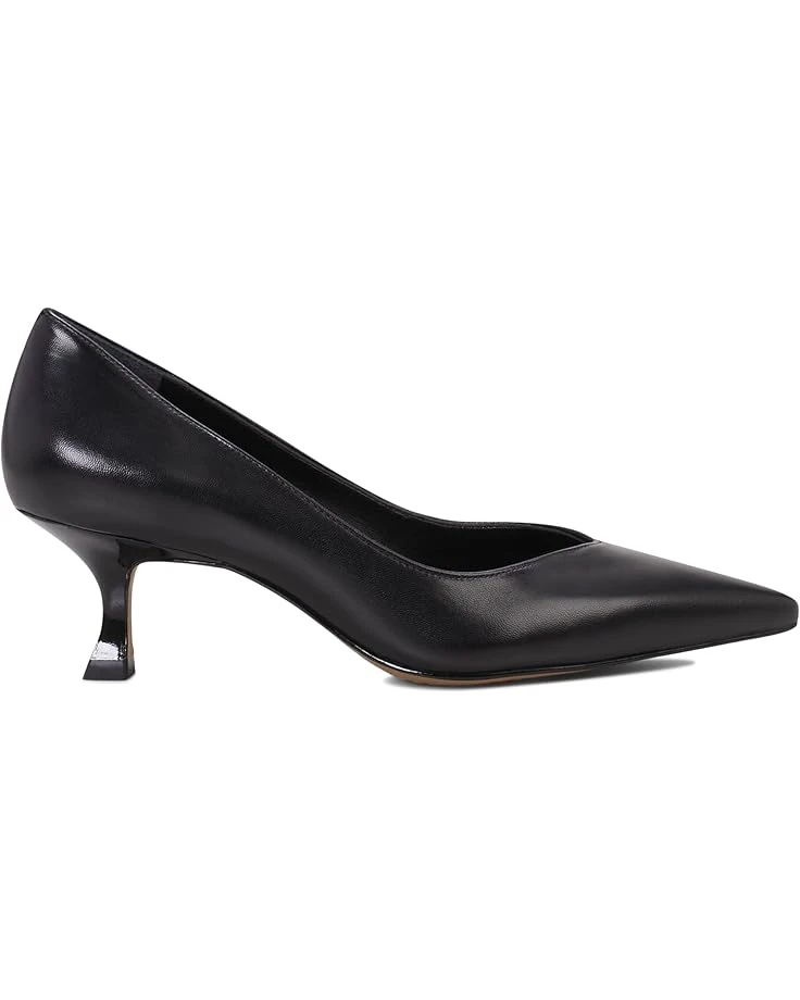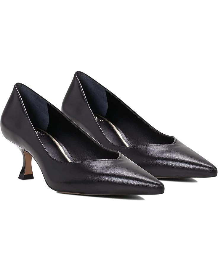 - Upgrade your desk-to-dinner style with an extra dose of shine and sophistication donning the Vince Camuto® Margie Heels. Displaying a pointy toe coupled with a covered kitten heel, these classic pumps feature a leather upper with a flattering V-shaped opening, a soft faux leather lining, and a cushioned EVA insole.