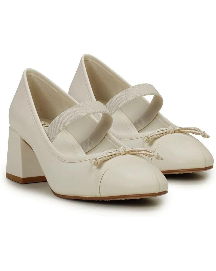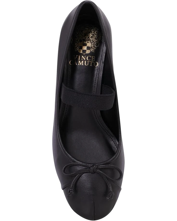 - Get compliments wherever you go donning the sleek and stylish Vince Camuto® Melodie Ballet Shoes. Elevated by a sculptural block heel and secured with an elasticized instep strap, these classic shoes look impressive with their polished leather upper decorated with a bow accent.