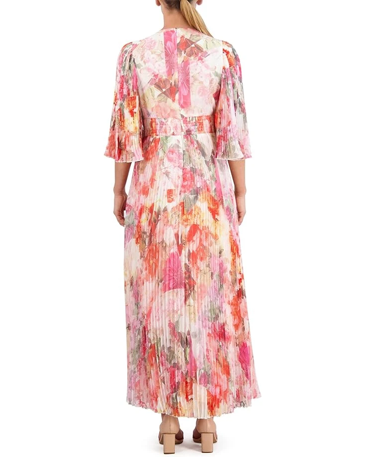 - A perfect choice for casual outings and parties, the Vince Camuto® Pleated Chiffon Maxi dress is crafted from lightweight chiffon fabric that keeps you comfortable all day. Featuring pleated details allover the skirt, this long dress offers a flowy fit. The short flutter sleeves and V-neckline take your comfort to the next level. Add a colorful twist to your outfits by wearing this floral dress.