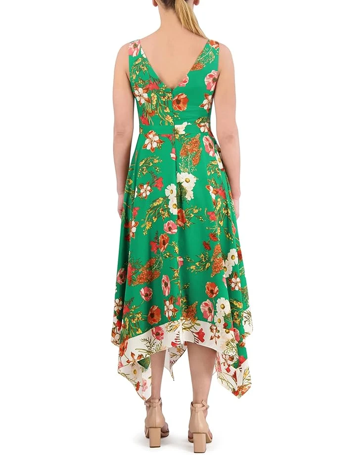 - Make your style statement by wearing the Vince Camuto® Printed Handkerchief Hem Midi. The sleeveless style and V-neckline add to its style and comfort. This printed dress features a handkerchief hem that offers an eye-catching appeal. The zippered back closure of the dress offers easy wear. Make a dramatic entry into any party or event by wearing this printed dress.
