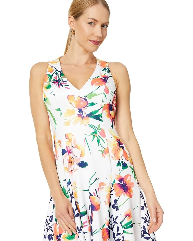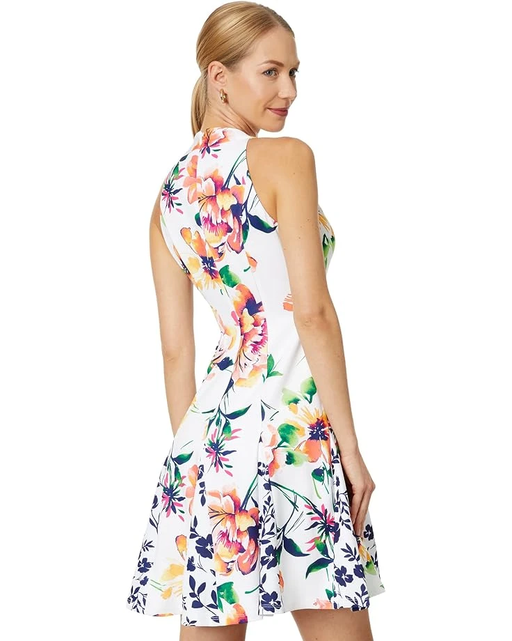 2 reviews for Vince Camuto Printed Scuba Fit-and-Flare with Combo Godets | Dresses