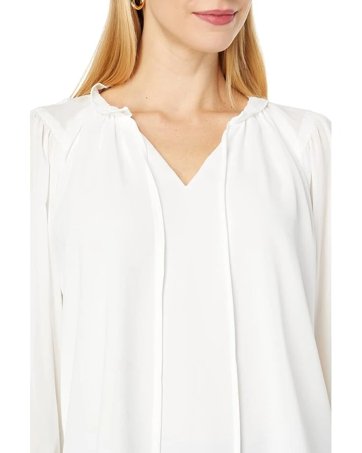 - Fusing with timeless styles, look and feel your best in the Vince Camuto® Raglan Peasant Split-Neck Blouse.