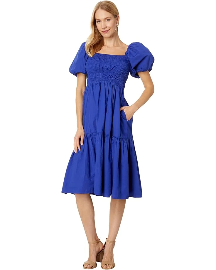 Vince Camuto Smocked Puff Sleeve Flounce Midi | Dresses