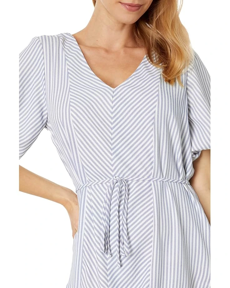 - Striped and chic, the lovely Vince Camuto® V-Neck Dress with Sinch Waist gives off an appealing vibe for a stylish day out.